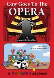 Cow Goes to the Opera begins with our friend Cow merrily skipping through the French countryside while pulling a flower cart to the marketplace at the Opera Festival in Aix-en-Provence. Once Cow arrives, his curiosity gets the best of him leading him on a dreamy jaunt filled with tasty tarts and the bright lights of the stage.